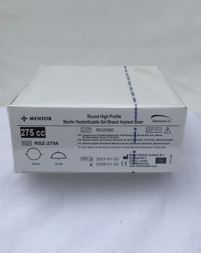 Mentor RSZ-2754 Round High Profile Sterile Resterilizable Gel Breast Implant Sizer 275cc